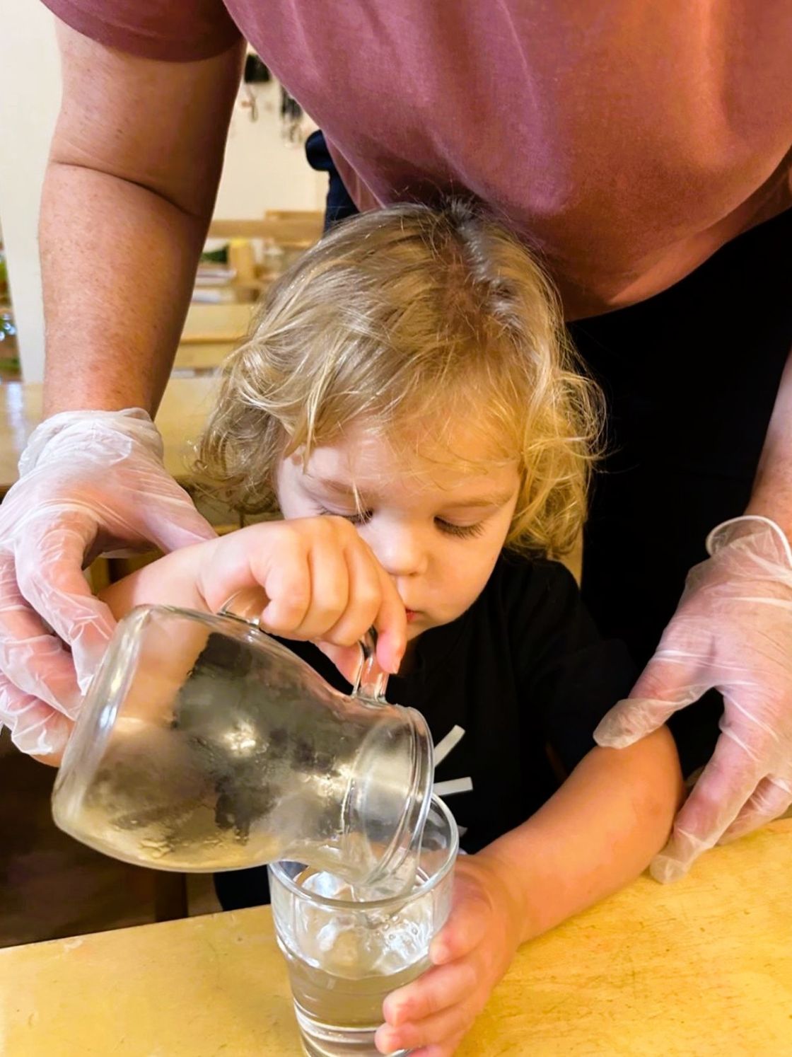 Every month, we work on our practical life skills. This month, it was all about tasting and enjoying the efforts of our food-handling skills. We peeled mandarins and made our own orange juice😋. Every day, we practised pouring our own water into a glass cup and using tongs and big spoons to serve our own food. Yum and fun! Of course, our routine includes other practical life skills, such as washing dishes, and independent self-help skills, like toilet training.